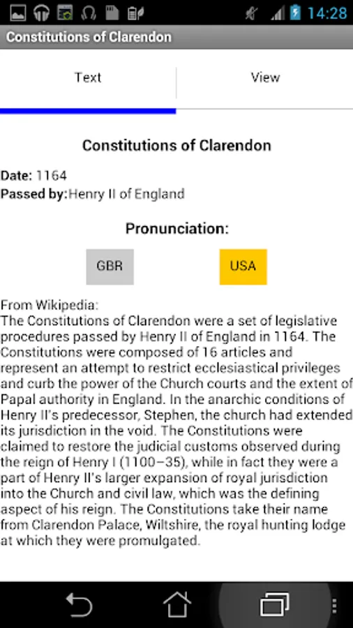 The Constitutions of Clarendon were a set of legislative procedures passed by Henry II of England in 1164. Discover the 16 articles and learn them easily with this app!