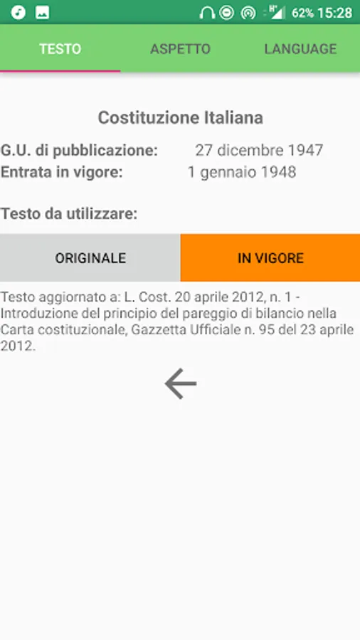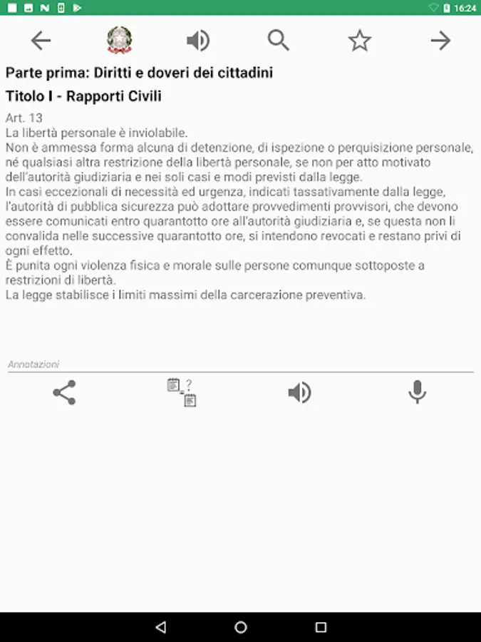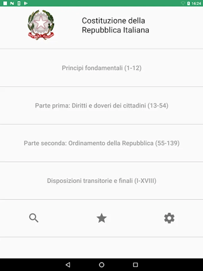 With this app from the layout comfortable and understandable you can browse all the articles of the Italian Constitution in force or original.