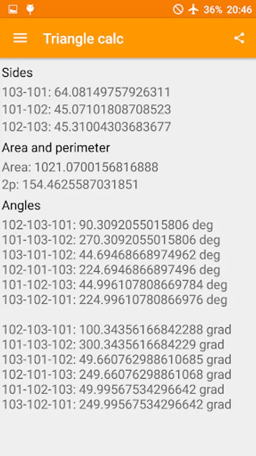 - Calculate sides, area, perimeter, angles and azimut of a triangle (the users just select three created points)