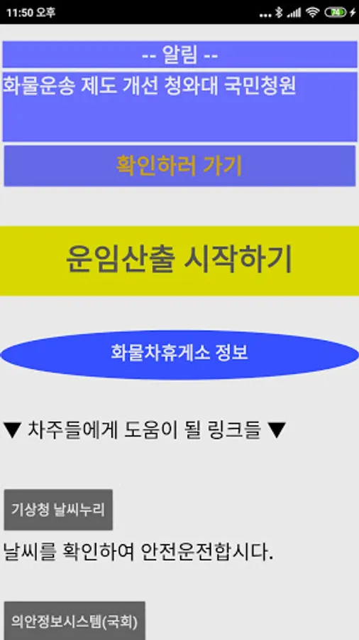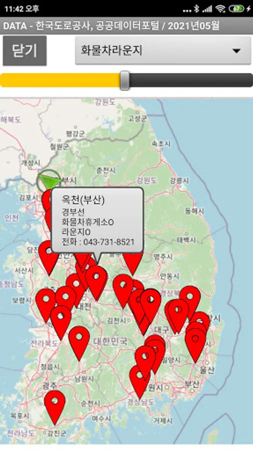 Provides location information of freight car rest areas and freight car lounges based on Korea Expressway Corporation data. (Data is built into the app itself.)