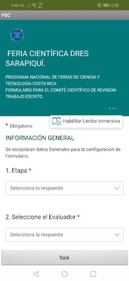 The app is developed at MIT app inventor and joins a Microsoft form together with a small database to tabulate the information of each evaluation.