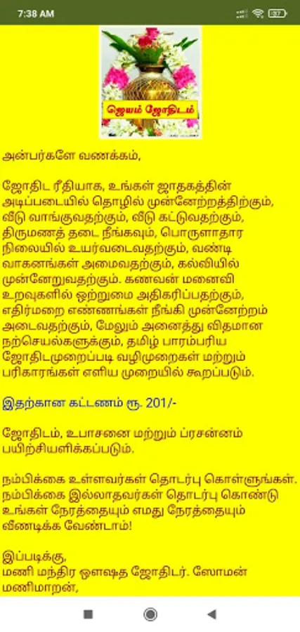 Mani Mantra Aushata Astrologer. Soman Manimaran