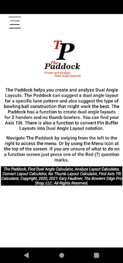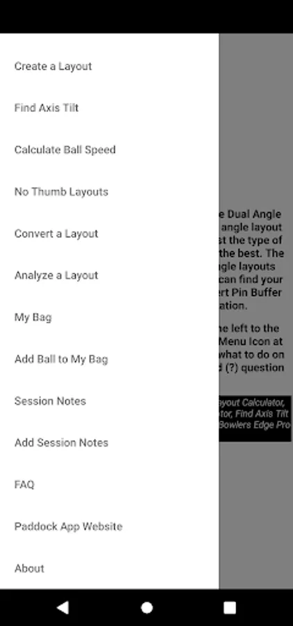 The Paddock is a resource for competitive bowlers, those who want to be competitive bowlers, and Pro Shop Professionals. For the Pro Shop Professional, The Paddock offers a way to efficiently develop Dual Angle Layouts for your customers and analyze an existing layout on a ball that they have brought in. For the Bowler, The Paddock helps you understand how different Dual Angle Layouts influence the bowling ball's motion and reaction. The Paddock is designed to compliment and enhance the services that your favorite Pro Shop Professional provides.