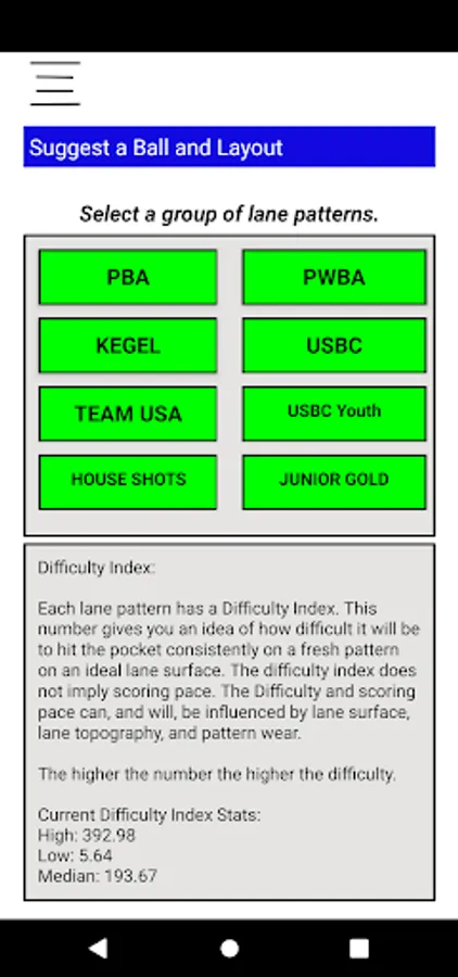 Suggest a Ball and Layout function allows the Users can select from over 150 different lane patterns, Typical House Shot Patterns, PBA Patterns, and Kegel Patterns..