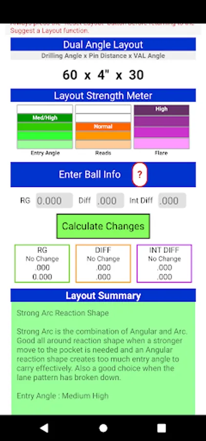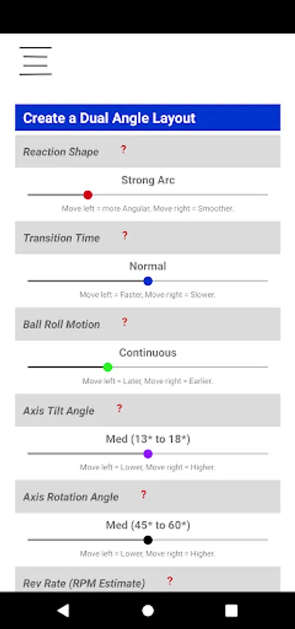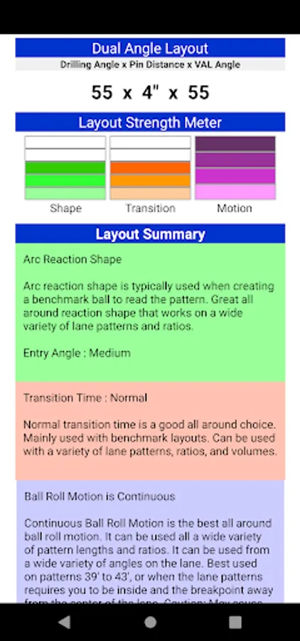 Create a Dual Angle Layout function, users can adjust the Layout for the Bowler's Axis Tilt, Axis of Rotation, RPM, and Ball Speed. .