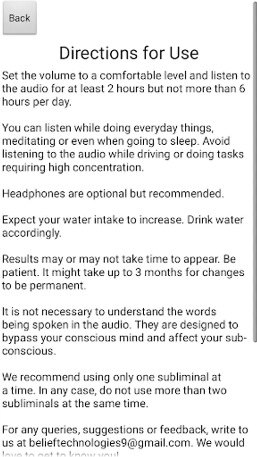 The app contains a very powerful audio track, which you’ll need to listen to for 2-6 hours per day. Only a little of your time, and you’ll be on your way to freedom from fear.