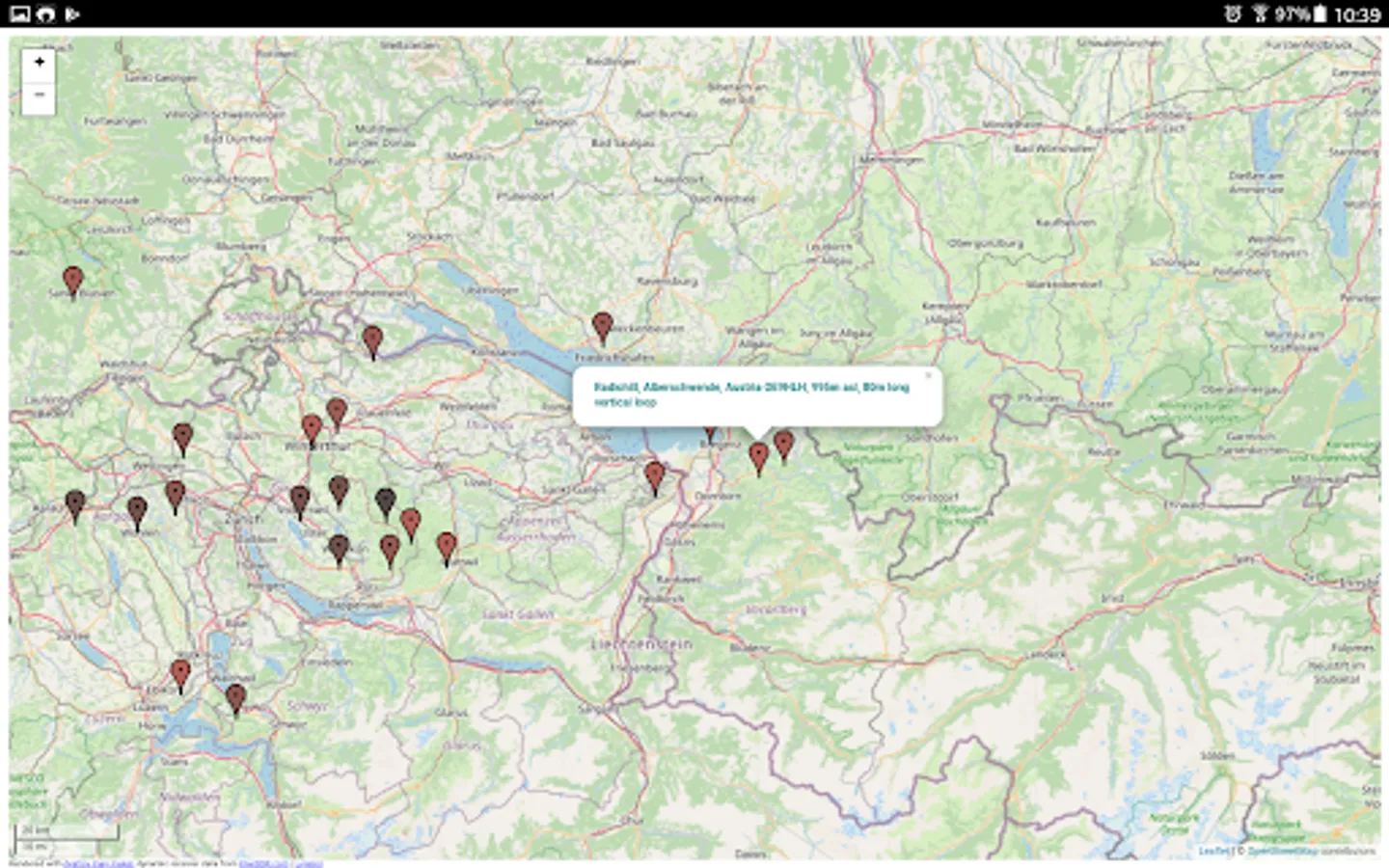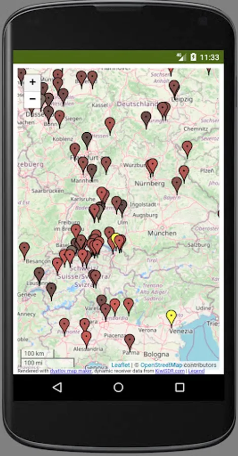 → Hit a marker symbol to display a link to the chosen KiwiSDR receiver.