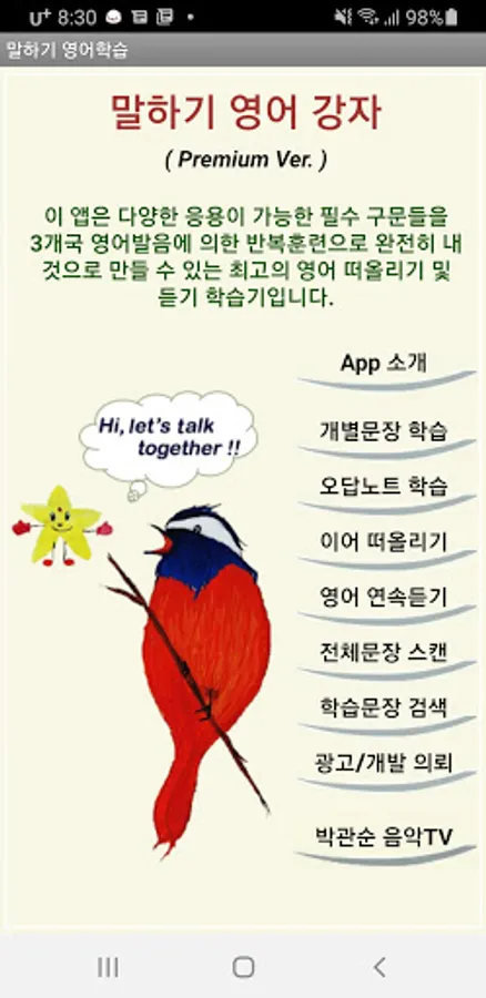 12. This app, which was released for the first time this time, will never be satisfied with its current appearance and will continue to upgrade in the future to keep its pride as the best speaking English learner, so please use and recommend a lot.