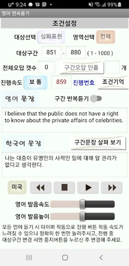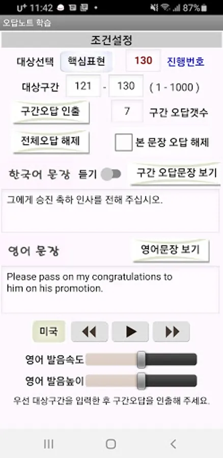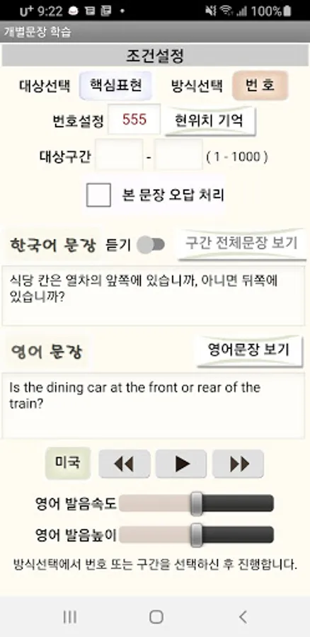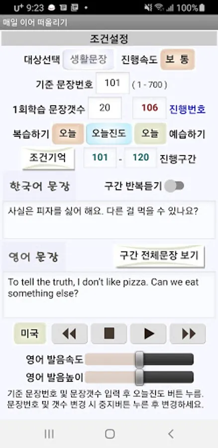 5. It is equipped with functions to properly set the learning section according to the user's level, adjust pronunciation and progression speed, and learn infinitely.