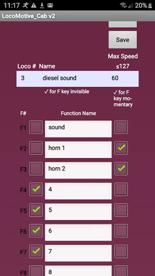 * Custom naming of your locos