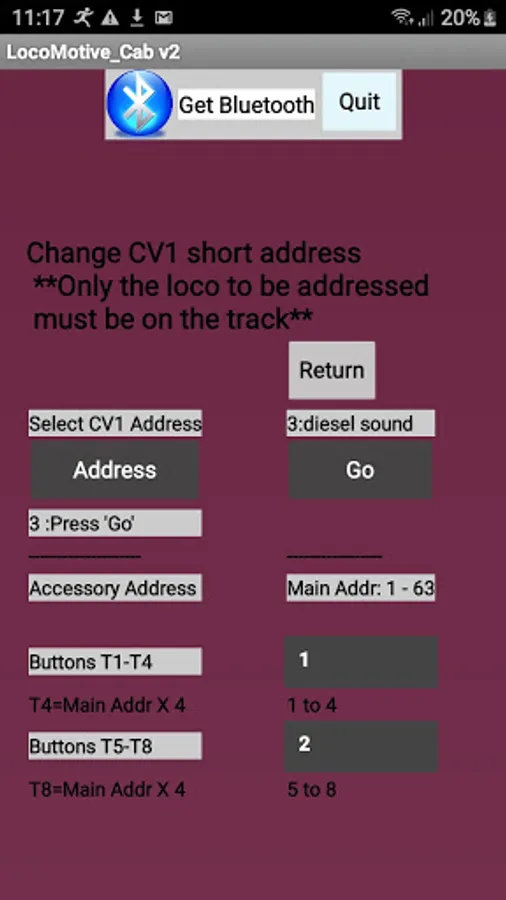 * Programming the CV1 loco address