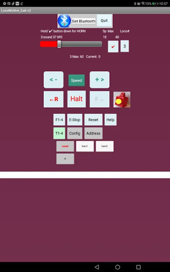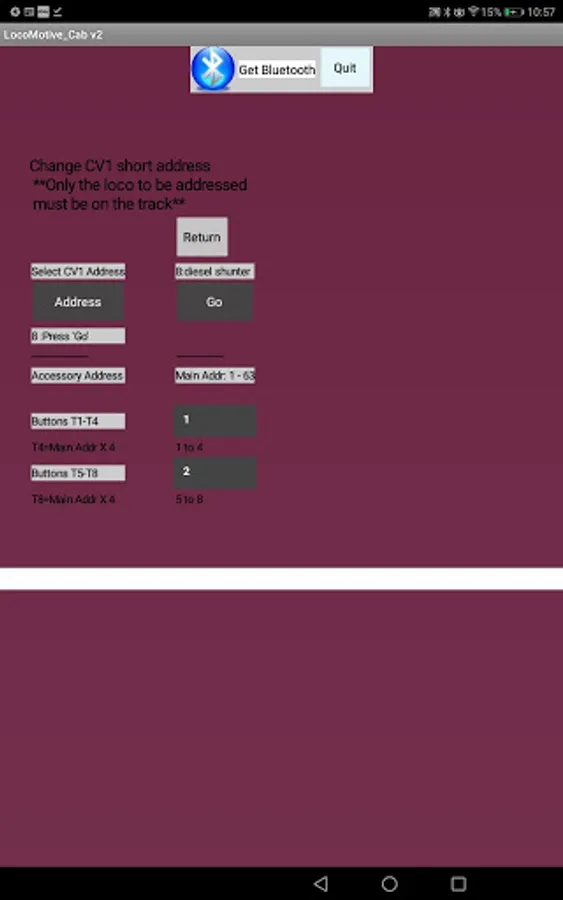 The App formats each DCC packet for transmission via Bluetooth to Arduino Pro Mini connected to a h-bridge to form a simple DCC command station with few parts.