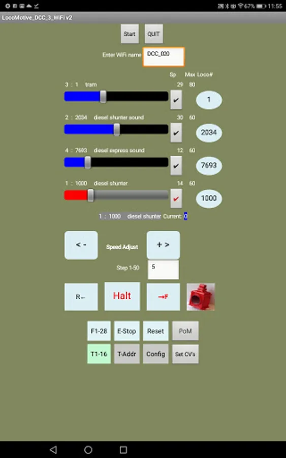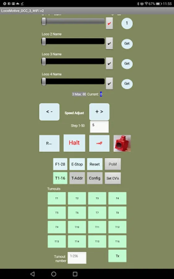 * Speed control of up to 4 locos at a time