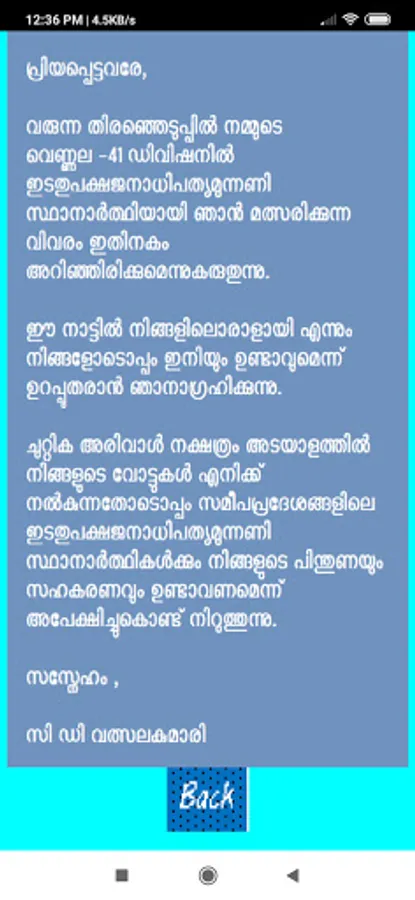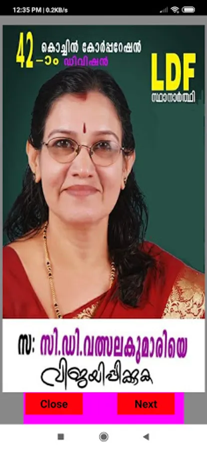 For the election campaign of Smt. C D Valsalakumari, Division 42, Vennala, Kochi