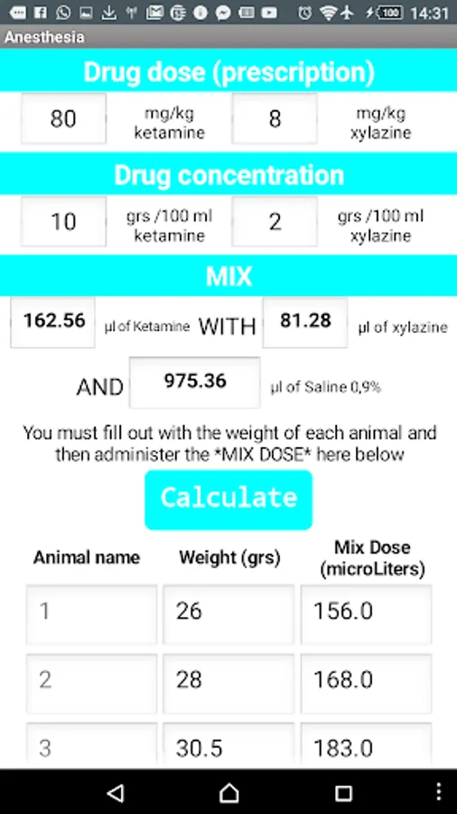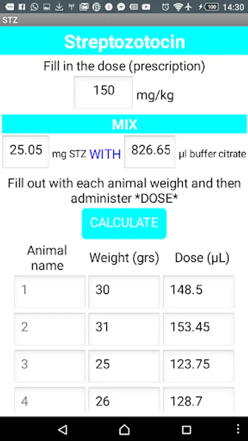 This tool helps researchers and veterinarians to calculate doses of analgesic, anesthetic and streptosotozin. Labinsane calculates intraperitoneal dose of streptozotocin for induction of diabetes in mice with a single dose (1). In addition, a formula is added to calculate the dose for anesthesia induction in C57 and Swiss micen (2), in order to reduce the risk of applying a higher or lower dose of these medicines and thus save time, animals and limited resources.
