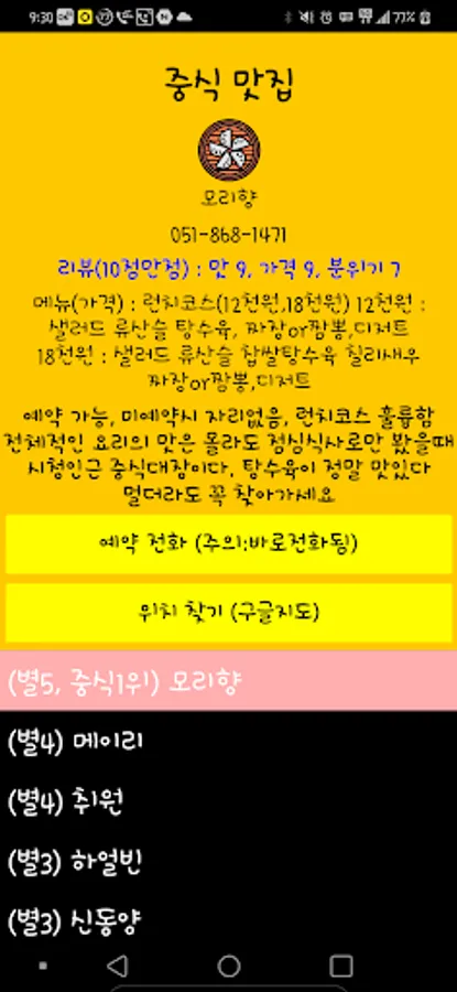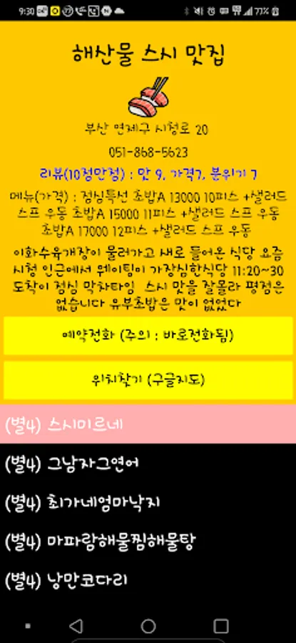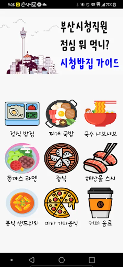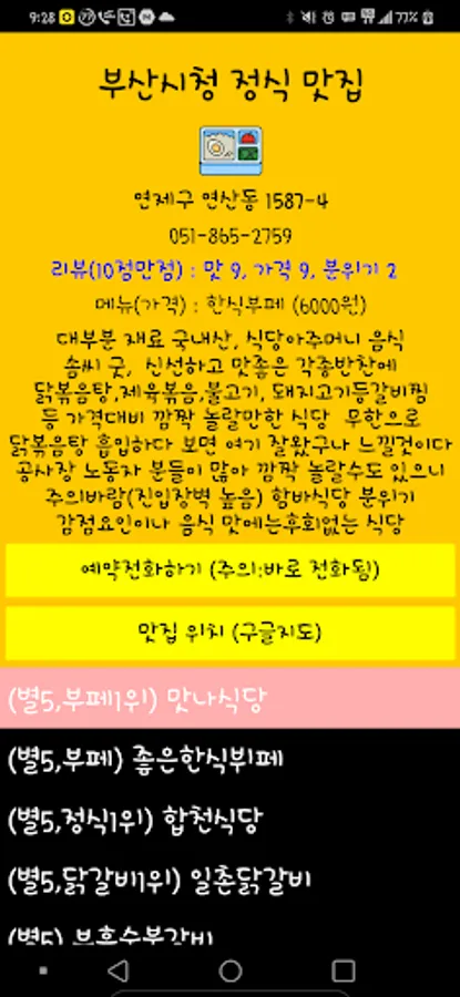 부산시청 인근 연산동 점심식사 맛집 160개소 이상 정리한 어플리케이션입니다.