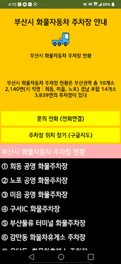 1. Information on parking lot for trucks in Busan
