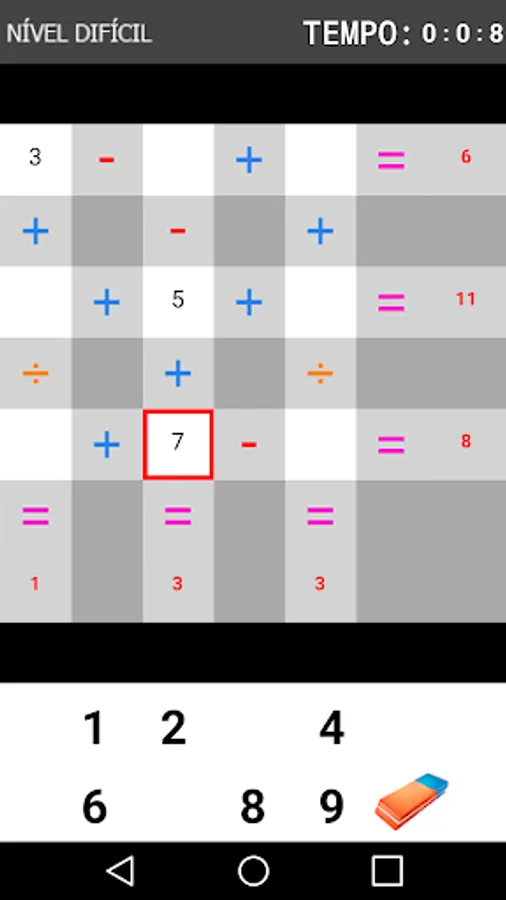 Based application Puzzle CrossMath, a kind of crossword puzzle in which numbers give way to words. Train your thinking trying to figure out which number from 1 to 9 will fill in the gaps of the equations without repeating them and so that the result is valid, in the fastest time possible.