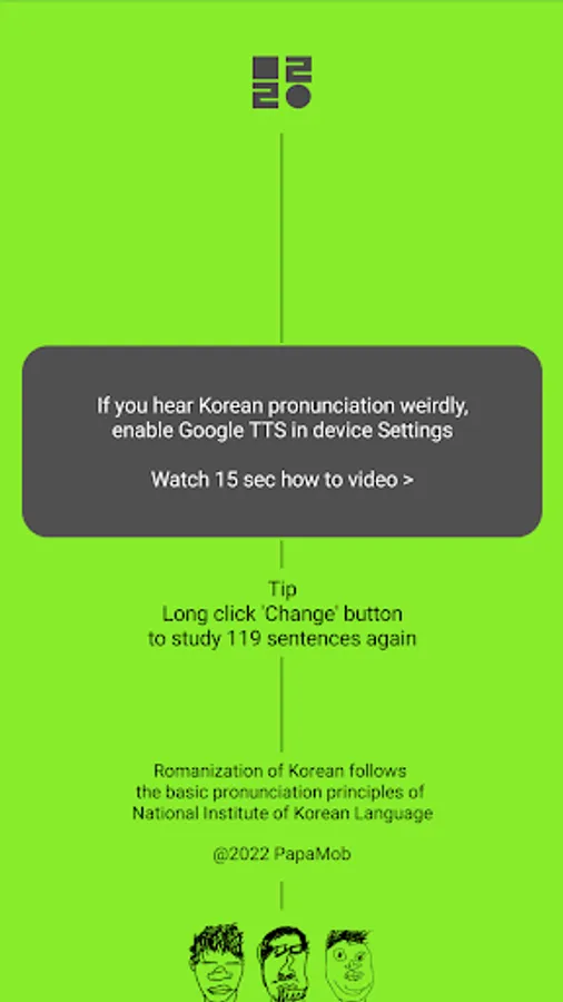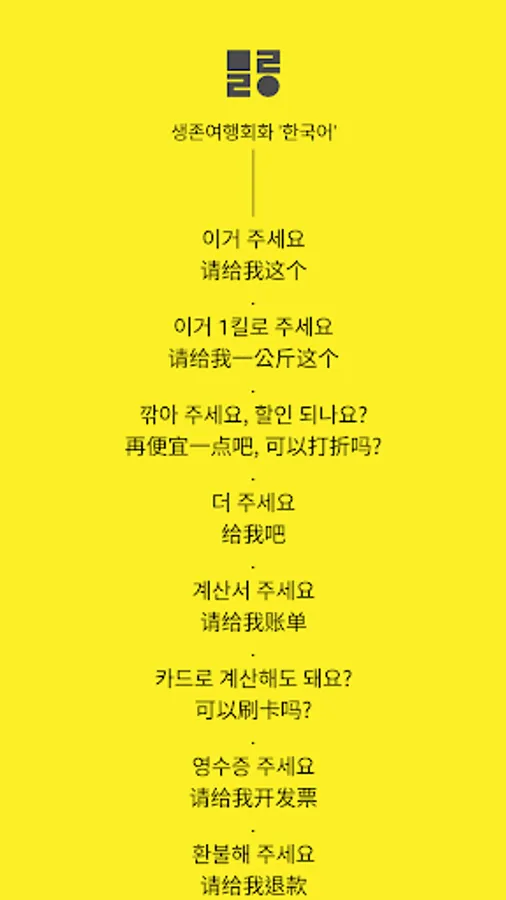 Korean survival trip conversation 119 sentences, listening and speaking practice app.