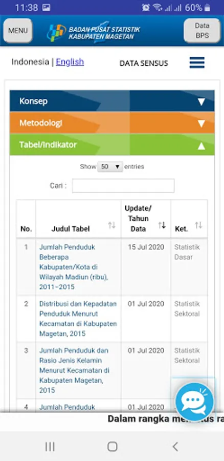 Mata lawu is an Android application built to make it easier for data users to obtain statistical data available on the BPS Magetan Regency website.