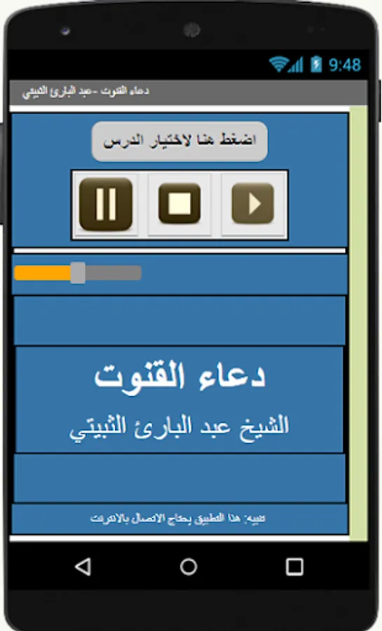 تطبيق يحتوي على مقاطع صوتية من دعاء القنوت للشيخ عبد البارئ الثبيتي