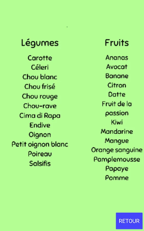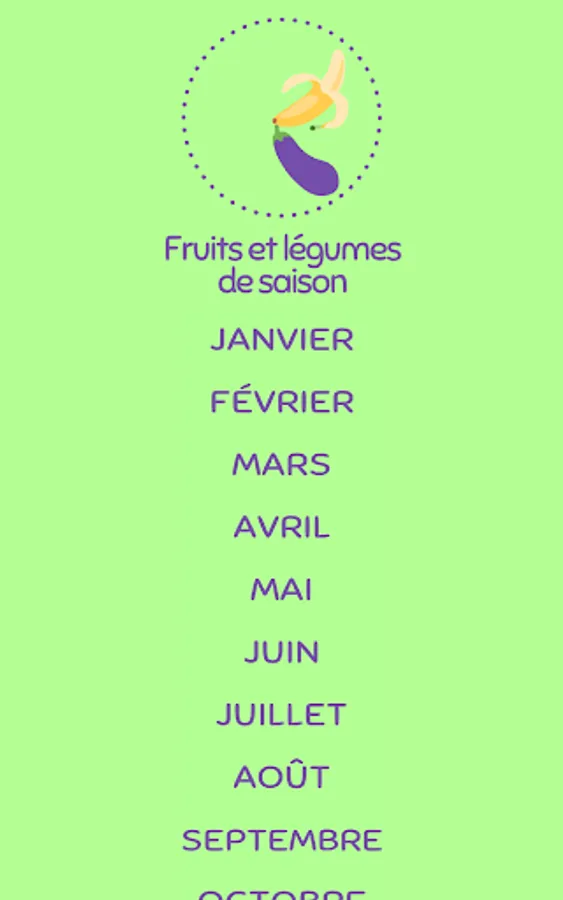 To consume in a rational way, you have to buy seasonal fruits and vegetables. This application aims to help you in this process by telling you that they are the fruits and vegetables to favor each month of the year. Very easy to use application.