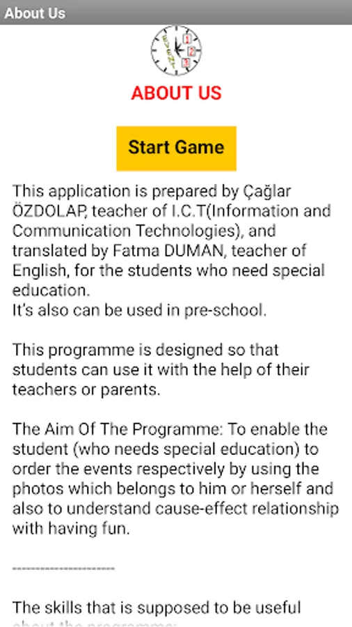 This application is prepared by Çağlar ÖZDOLAP, teacher of I.C.T(Information and Communication Technologies), and translated by Fatma DUMAN, teacher of English, for the students who need special education.
