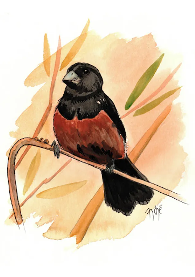 The Curio is a passerine bird of the Thraupidae family, also known as avineyard, bicudo, rice porridge and purple breast (Pará). There are close relatives of our Bullfinch in Nigeria and California, but they differ from ours in plumage and song.