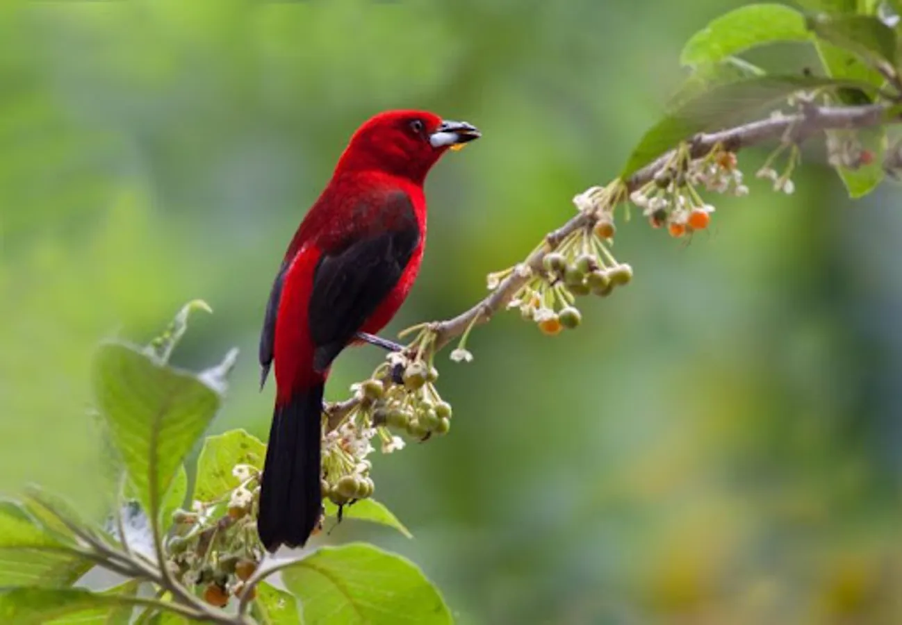 Species and bird symbol of the Atlantic Forest and one of the most spectacular in the world, the blood-tiê (Ramphocelus bresilia), also known as tingê, ox-blood, fire-tiê, chau-baeta, japiranga and tapiranga, is a bird South American passerine bird of the Thraupidae family, recognized for the beauty of its red plumage.