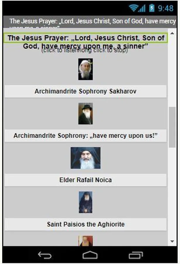 „The Jesus Prayer - PRAYER OF THE HEART” Free application for Smartphone (mobile phone or android tablet) containing the Jesus Prayer - audio files, recording of Contemporary Saints and Holy Elders: Elder Sophrony Sakharov, Elder Rafail
