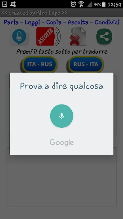Speak or write in Italian or in Russian, he translates from written or spoken in the chosen language, will translate your voice and you will hear the pronunciation of the translated results.