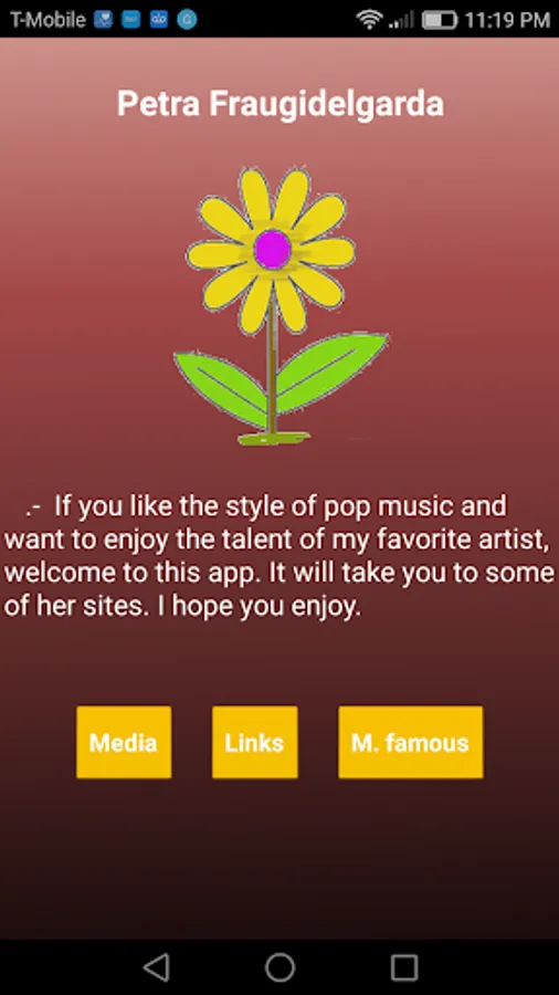 This app mainly links to websites of our favorite pop artist. Download it and you will see who it is. We hope you like it. Made it with all appreciation for her.