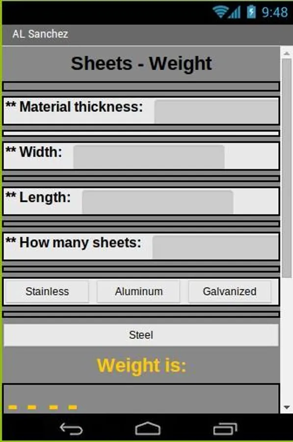You can easily calculate the weight of a certain number of sheets of metal, either stainless steel, mild steel, aluminum or galvanized metal.