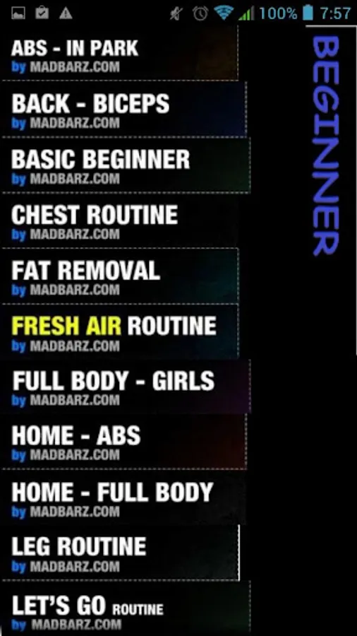 All old madbarz routines clasified by difficulty and alphabetically ordered.