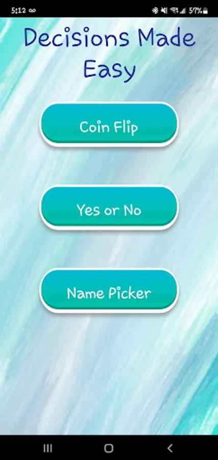 Flip a coin, "yes" or "no", and name picker are the three ways you can make decisions in this app.