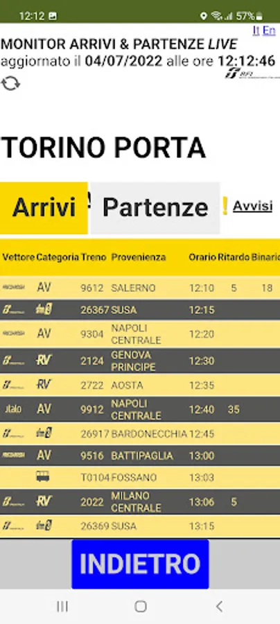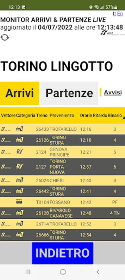 - arrivi e partenza dalle principali stazioni ferroviarie di Torino