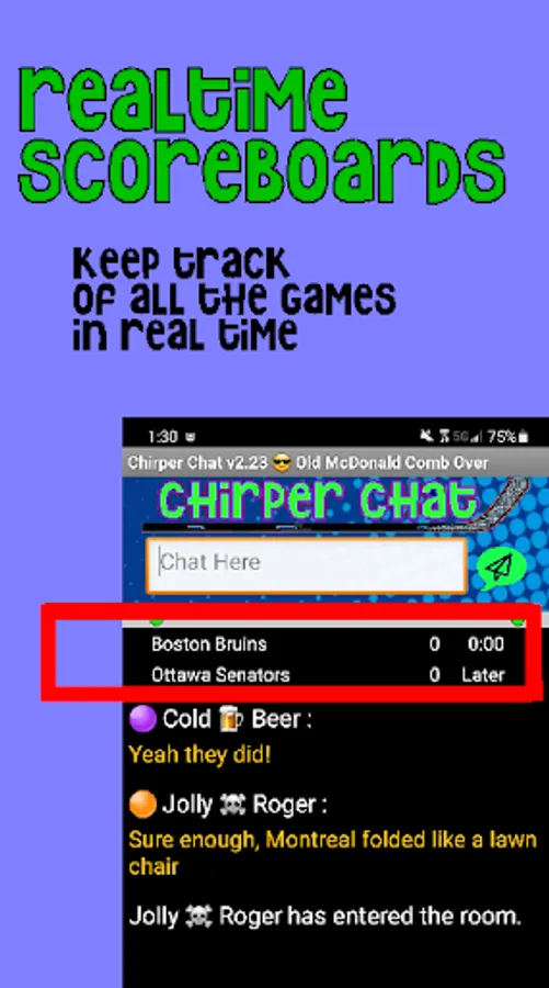 Chirper Chat is a free live chat room app. It's a place where sports fans 18 and older can hang out together while watching the game, all from the convenience of their mobile device.