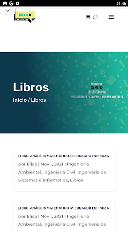 UDH CONECTA is an education website that disseminates educational digital content, such as books, manuals, excel templates, magazines for careers in civil engineering, environmental engineering, among others.