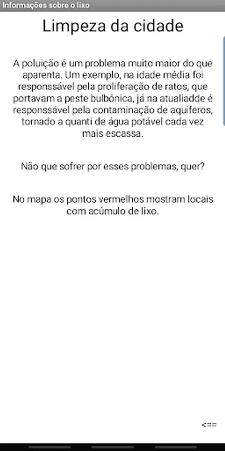1st operation: Seeks to reduce outbreaks of garbage accumulation in cities. You can view where there is or indicate if you are in a garbage dump location.