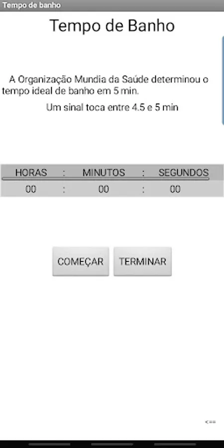 2nd operation: According to the World Health Organization (WHO), the ideal bath time is five minutes. Then here you will have access to a timer that will tell you when this time is running out and if it takes longer than WHO indications, brief information will be shown.