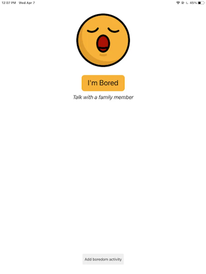 Click on the "I'm Bored" button to get a suggestion on what to do.