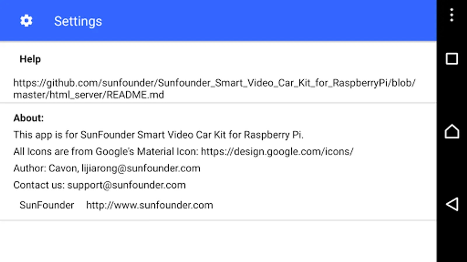 This app is for the SunFounder Smart Video Car Kit for Raspberry Pi (NOT FOR PICAR-V), an open source robot car with video transmission in real time.
