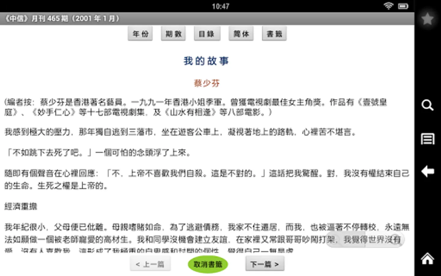 The monthly magazine "Chinese Today", published by Chinese Christian Mission (CCM), will reflect on life, analyze problems, and explore ways with you. This application is designed to allow more people to read "CITIC" easily and conveniently:
