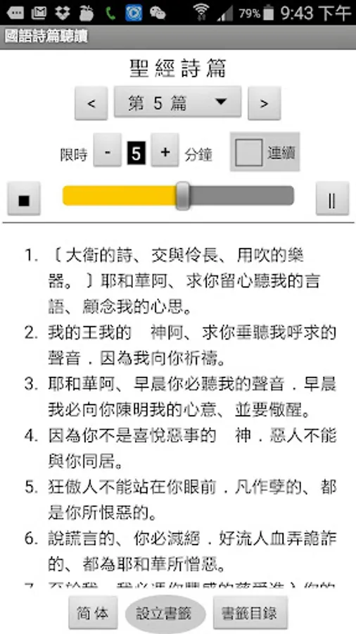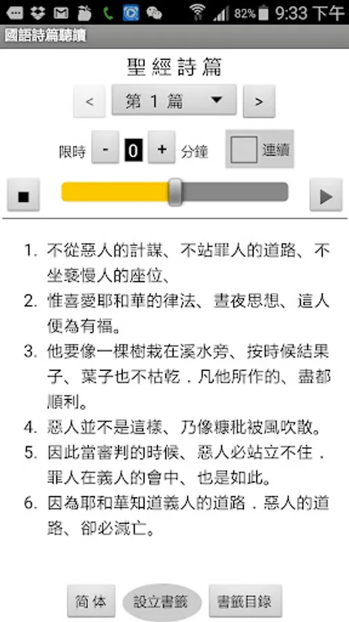 Psalms in Mandarin (Psalms in Mandarin), published by Chinese Christian Mission (CCM), allows you to listen, read or read while listening anytime, anywhere: