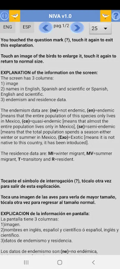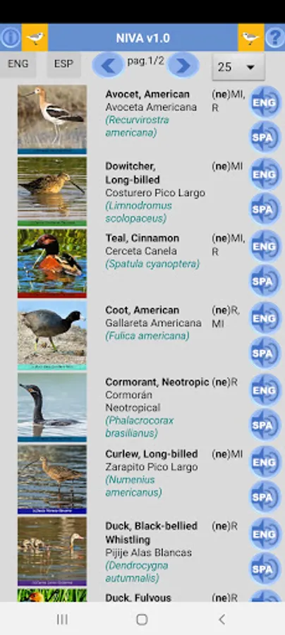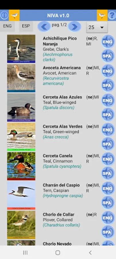 It shows you the information by pages of 25, 35 or 50 birds, a number that you can choose.