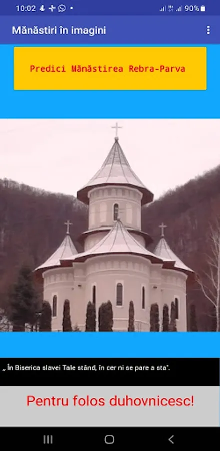 The application allows access with a single click to the page where the sermons from Rebra-Parva Monastery, Bistrița-Năsăud County are posted online.