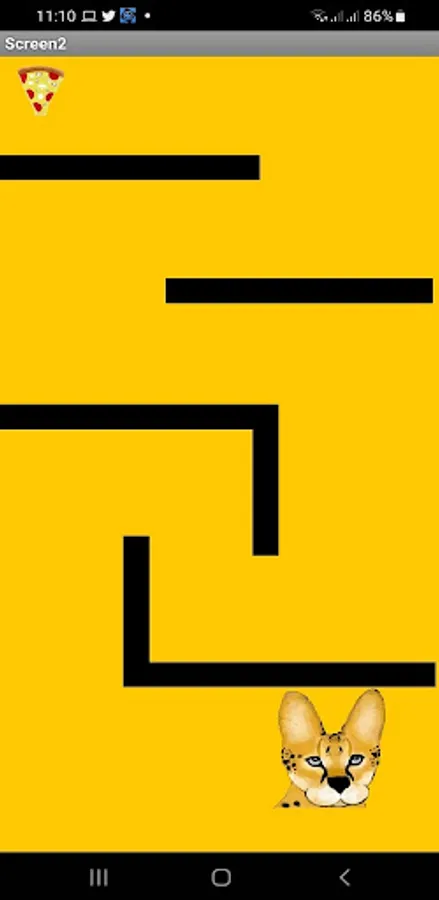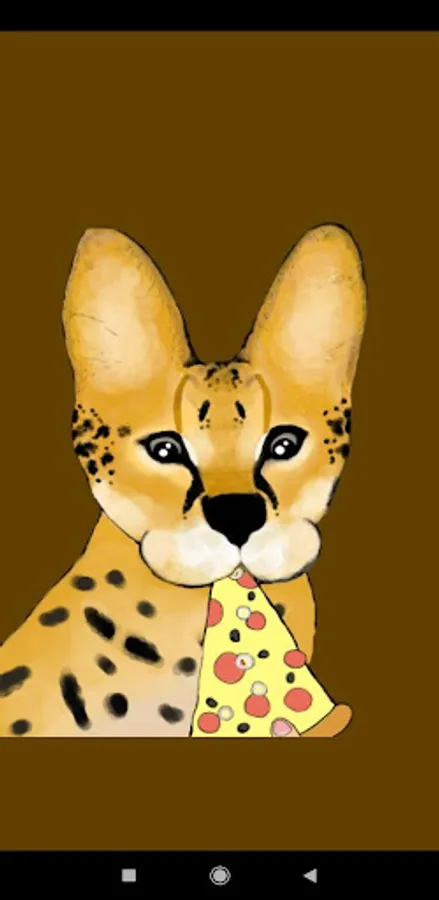 The application includes a game of dexterity, through which you have to give pizza to the cat.