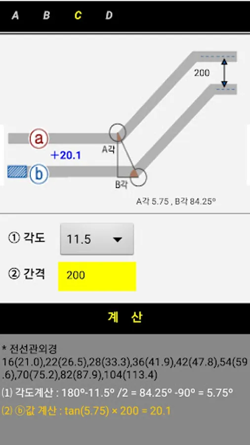 In the third c, the difference value can be obtained by entering the angle and interval to obtain the value of the constant interval when the tray and piping are installed vertically.