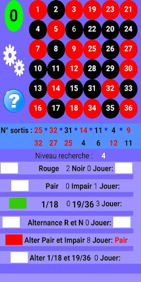 gradually enter the numbers released on the casino roulette, whether real or simulated as on the web; the search level is initially 3 but you can configure it in the settings.