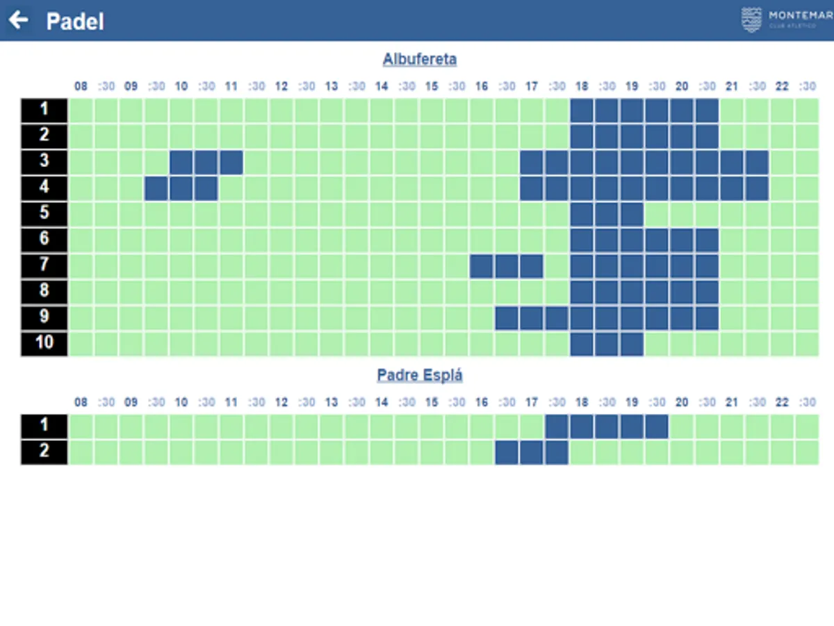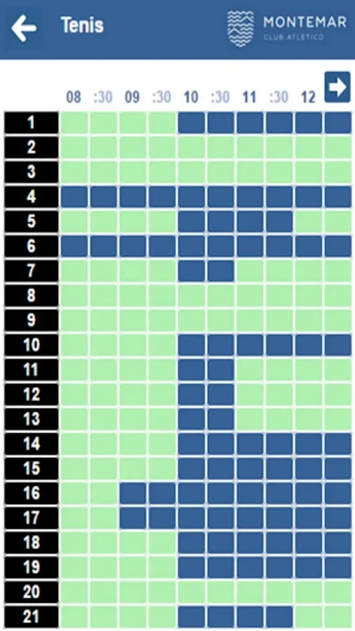 Through this application partners and non-members can see the availability of the facilities of Club Atlético Montemar.